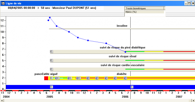 Ainsi, en 2004, la Ligne de vie était-elle déjà capable de gérer les préoccupations de santé (épisodes de problèmes de santé et gestion du risque), c’est-à-dire « ce sur quoi on travaille », les traitements et actes, « ce qui a été fait » et les cibles « ce qu’on cherche à faire » ; donc les trois concepts de base d’un outil de gestion de projet.